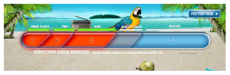 Decided to switch to the tropical order tracker theme. Now a parrot tells me “We be quality checking your order man, and it be looking soon good.”