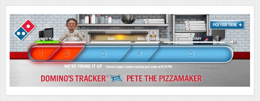 I have the Domino’s tracker open in an inactive tab and I started doing other stuff. Very terrifying to hear a random “ALRIGHT! YOUR PIZZA IS NOW IN THE OVEN” in the voice of Pete The Pizzamaker when you don’t expect it.