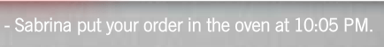 Sabrina put my pizza in the oven very quickly. Thank you Sabrina. Sorry you have to work Sunday night Sabrina. She’ll never know that I know her name, and what she’s doing and where she is right now. Why does Domino’s put the name of the pizza people at the bottom of this thing. Yi is now driving the pizza to me.